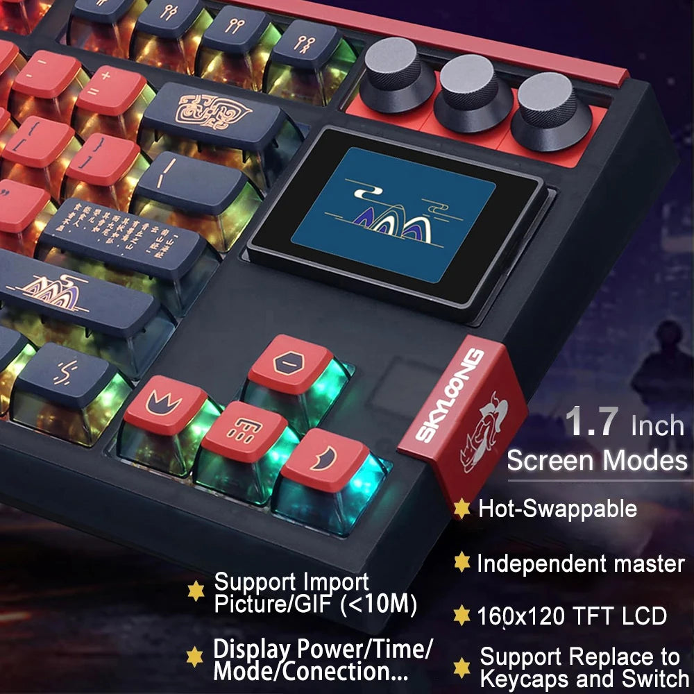 SKYLOONG GK87 Pro 3-Mode Wireless Mechanical Keyboard Full-Key Hot-Swappable 1.7inch RGB Screen Custom Low latency Game Keyboard